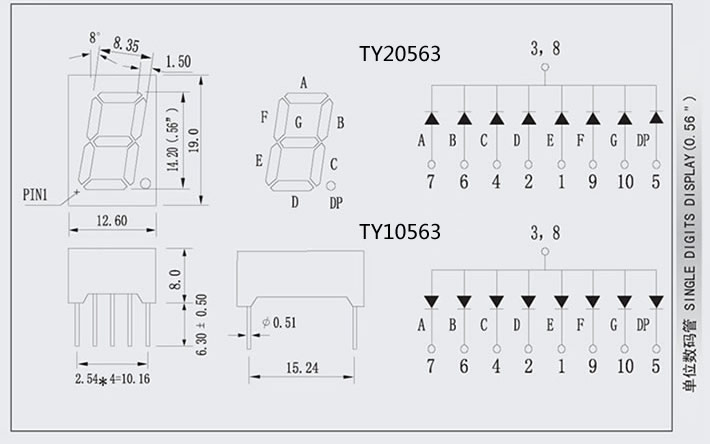 ⑨極性:共同陽極/共同陰極(共陽/共陰)。