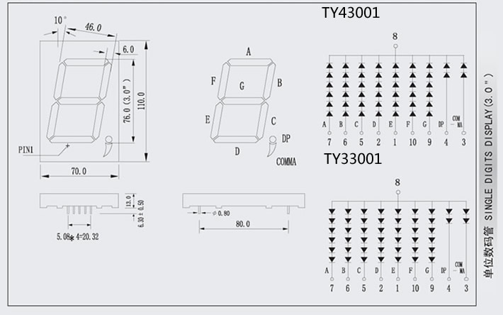 ⑨極性:共同陽極/共同陰極(共陽/共陰)。