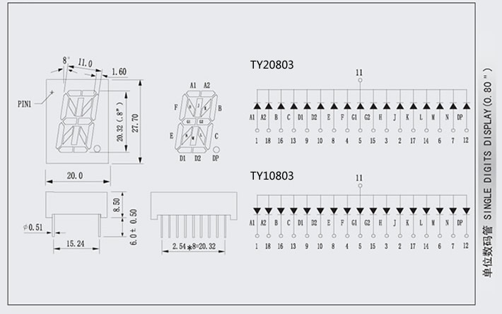 ⑨極性:共同陽極/共同陰極(共陽/共陰)。